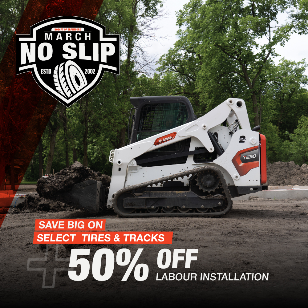 This limited-time promotion is available only through Bobcat of Brantford. Use promo code NOSLIPMARCH to redeem your discount! Visit us at 566 Oak Park Road, Brantford, call (519) 752-7900, or email service1@bobcatofbrantford.com to learn more.